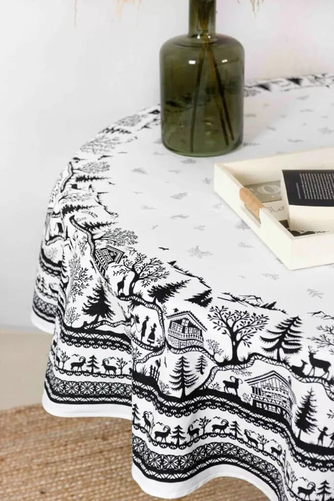 仏の山あいを描いた、撥水テーブルクロス