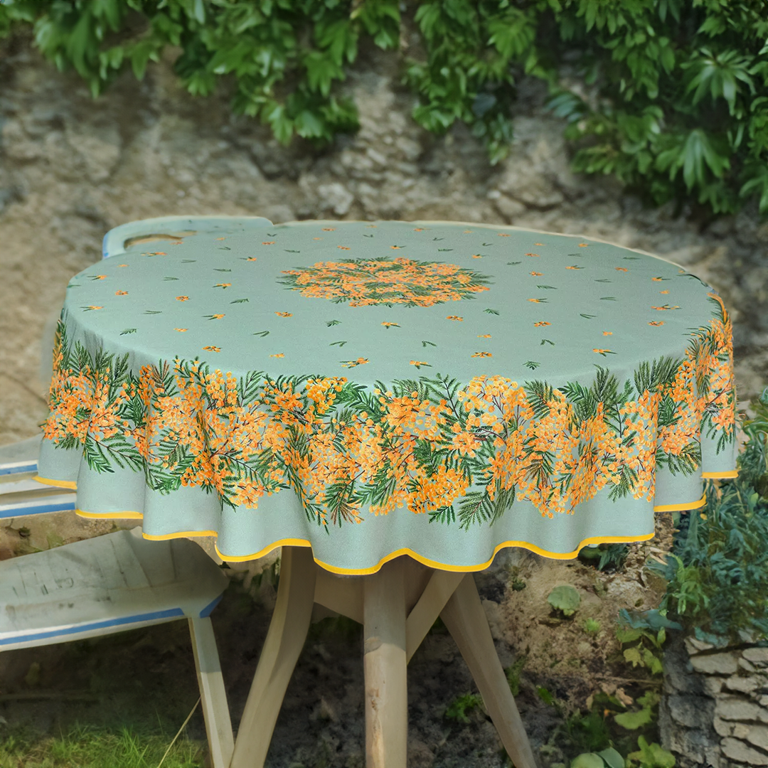 《フランス製コットン撥水クロス》ラウンドテーブルクロス|ミモザ|直径180cm