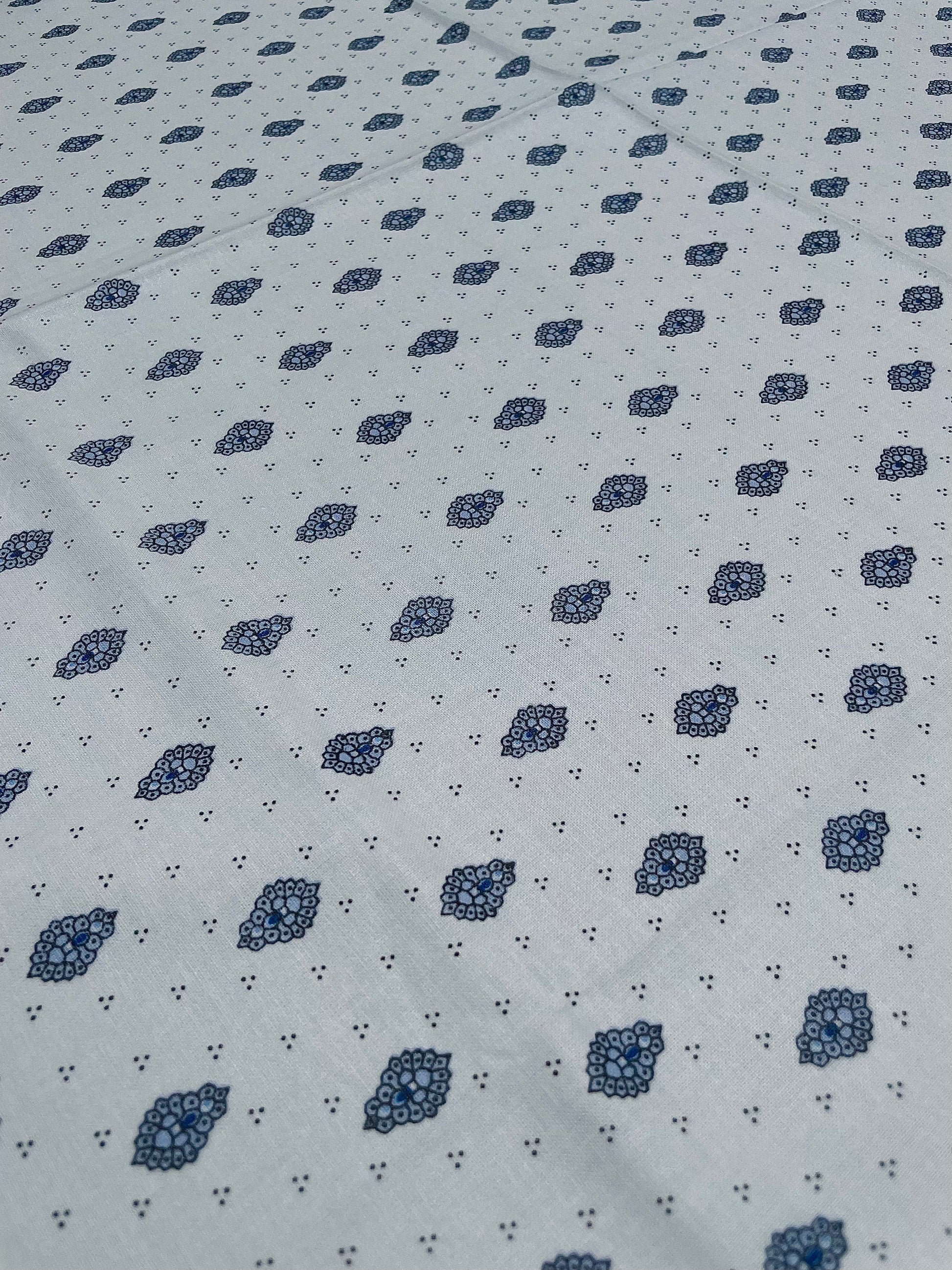 中央には小紋柄が整然と配され、縁には印象的なボーダーが施された、王道スタイルの南仏デザインです。