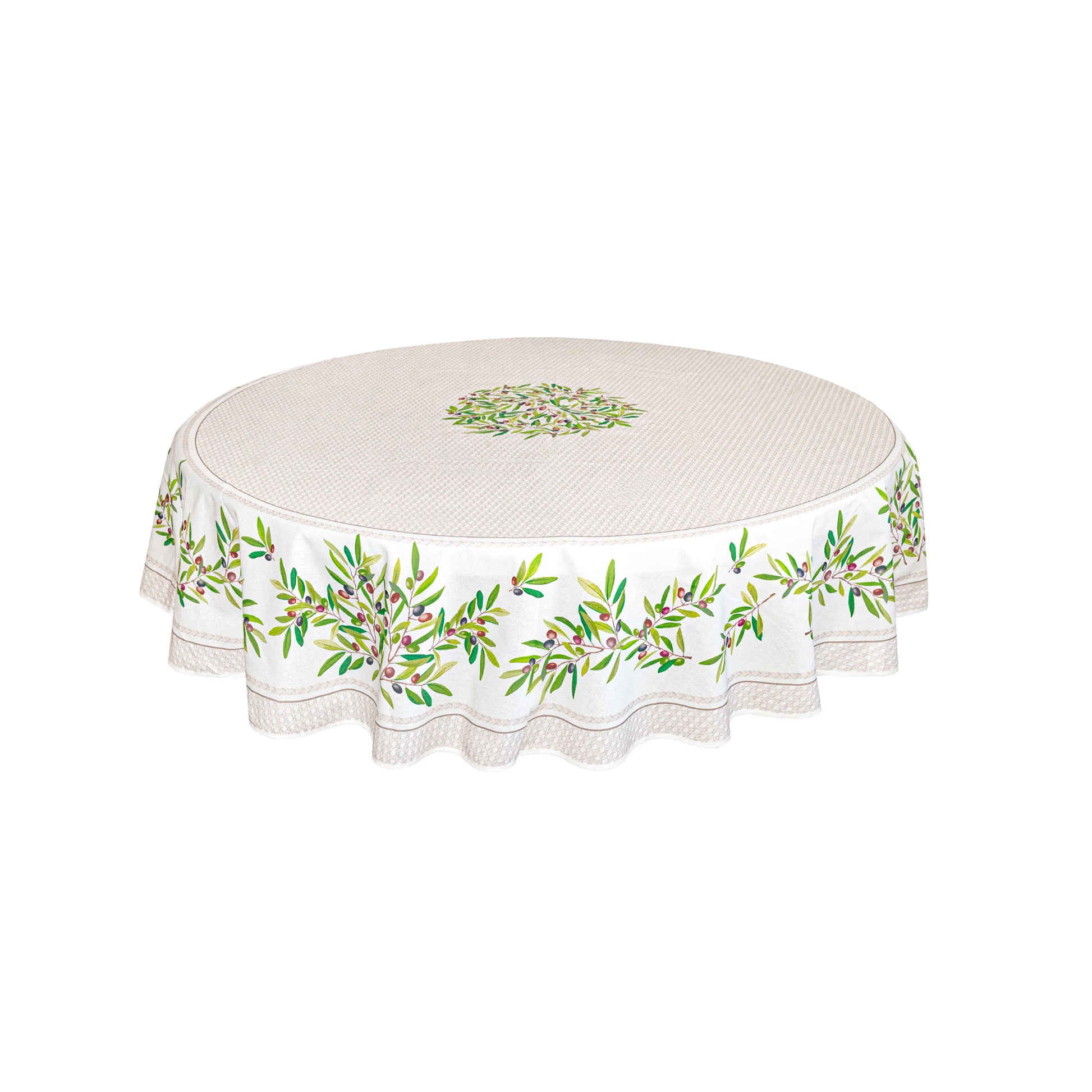 • オリーブ柄と生成りのバランスが美しい、落ち着いた印象の南仏クロス